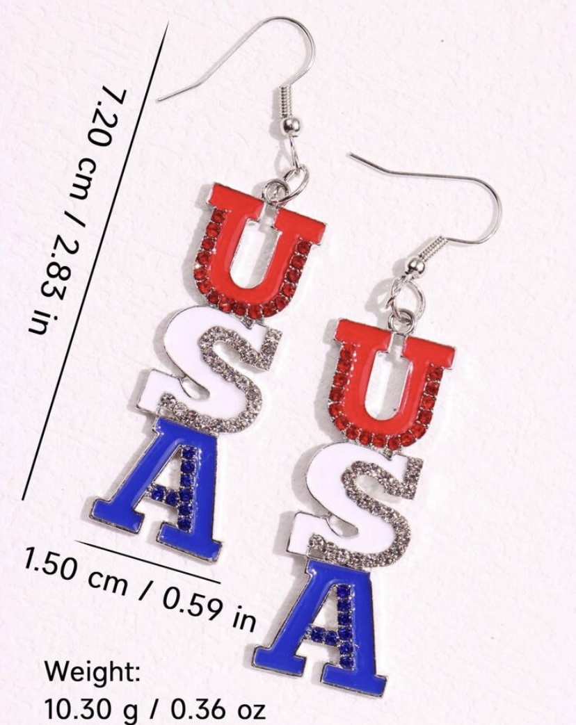 1 Pair USA Letter Pendant Patriotic Red White Blue Striped Earrings, Creative American Independence Day Fashion Jewelry