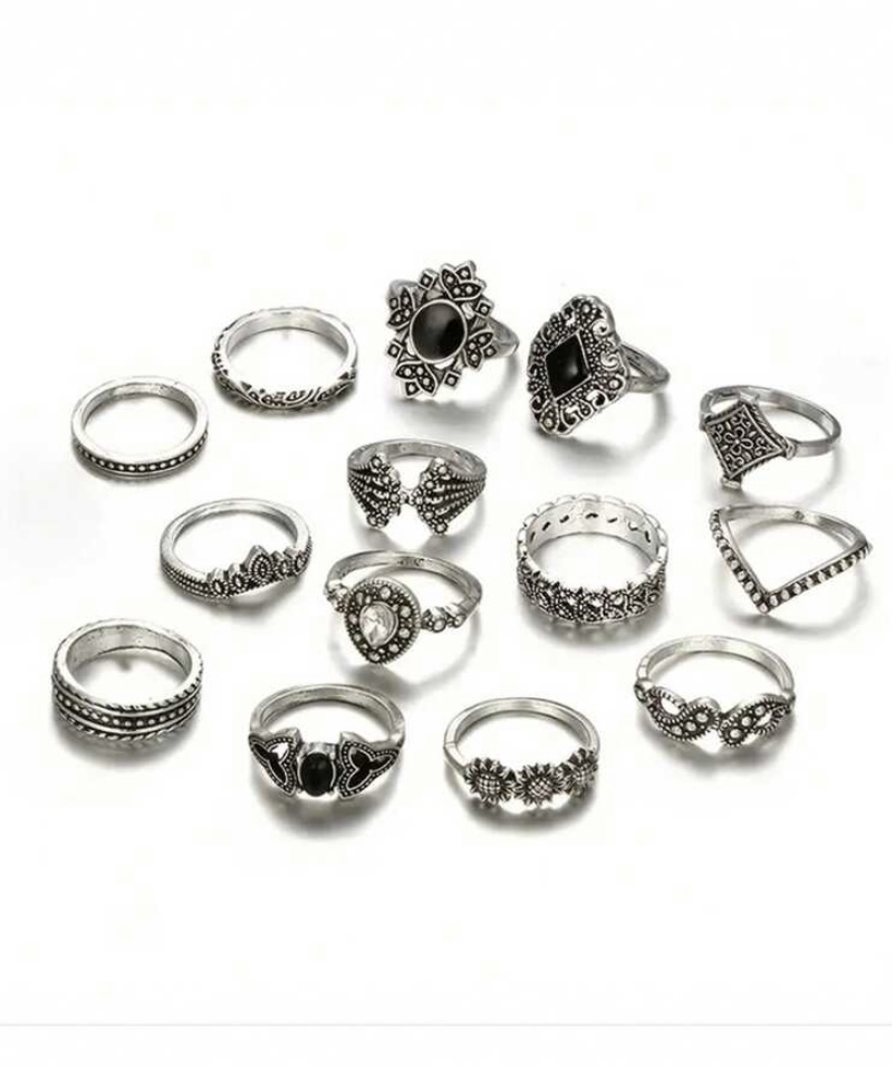 15pcs Goth Style Ring Set, Vintage Urban Hip-Hop Knuckle Rings, Fits Any Occasion, Perfect Holiday Gift