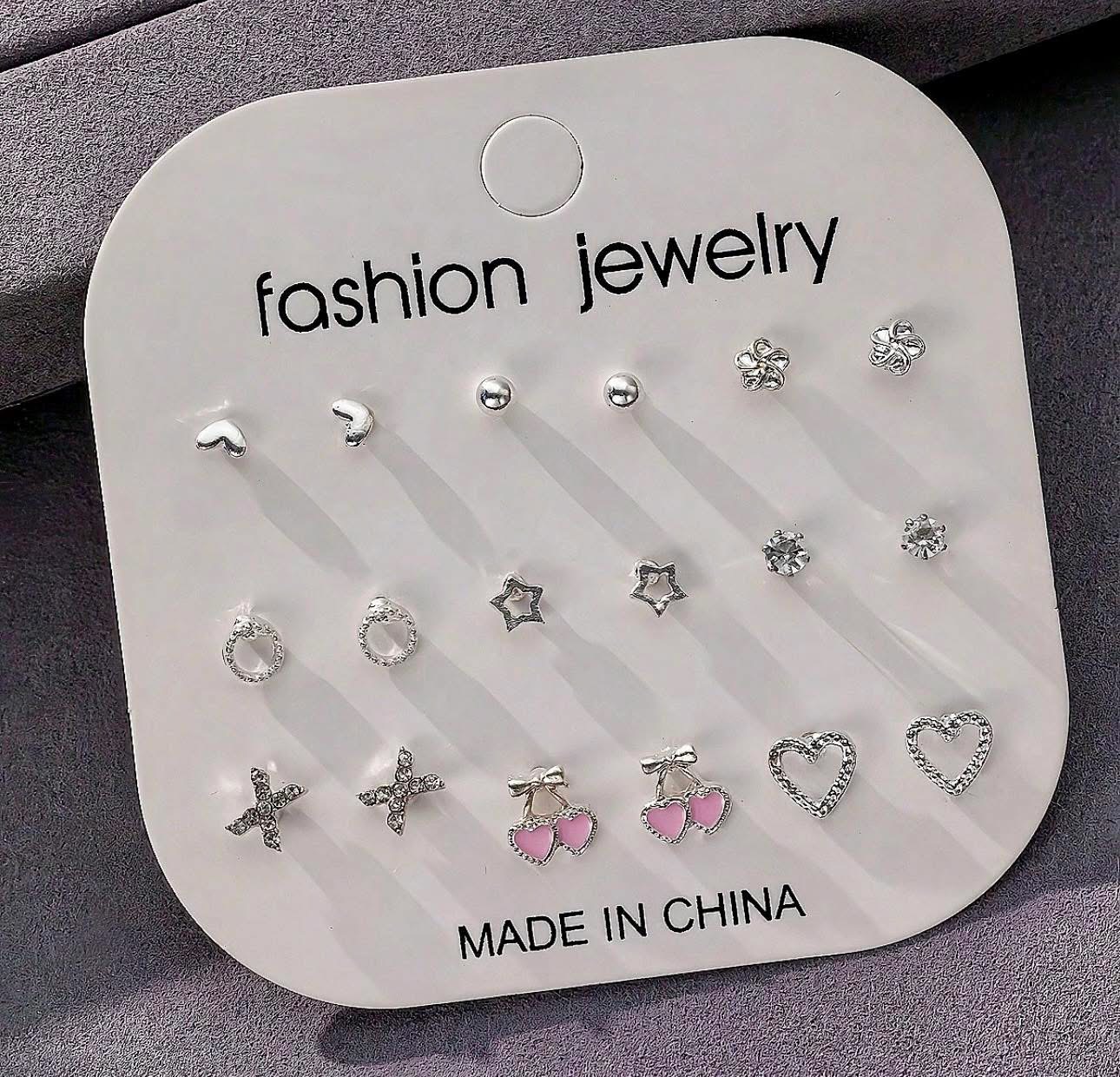 9 Pairs New European & American Cross-Border Rhinestone & Pearl Heart-Shaped Mini Stud Earrings, Versatile For Daily Wear & Formal Dress