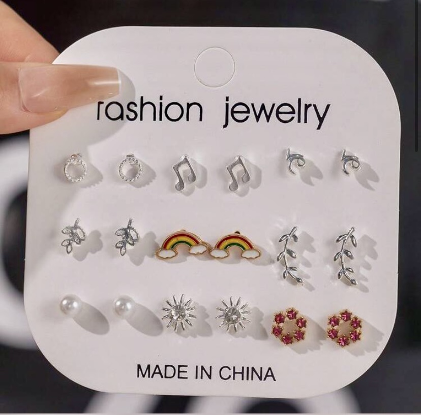9 Pairs New European & American Cross-Border Rhinestone & Pearl Heart-Shaped Mini Stud Earrings, Versatile For Daily Wear & Formal Dress