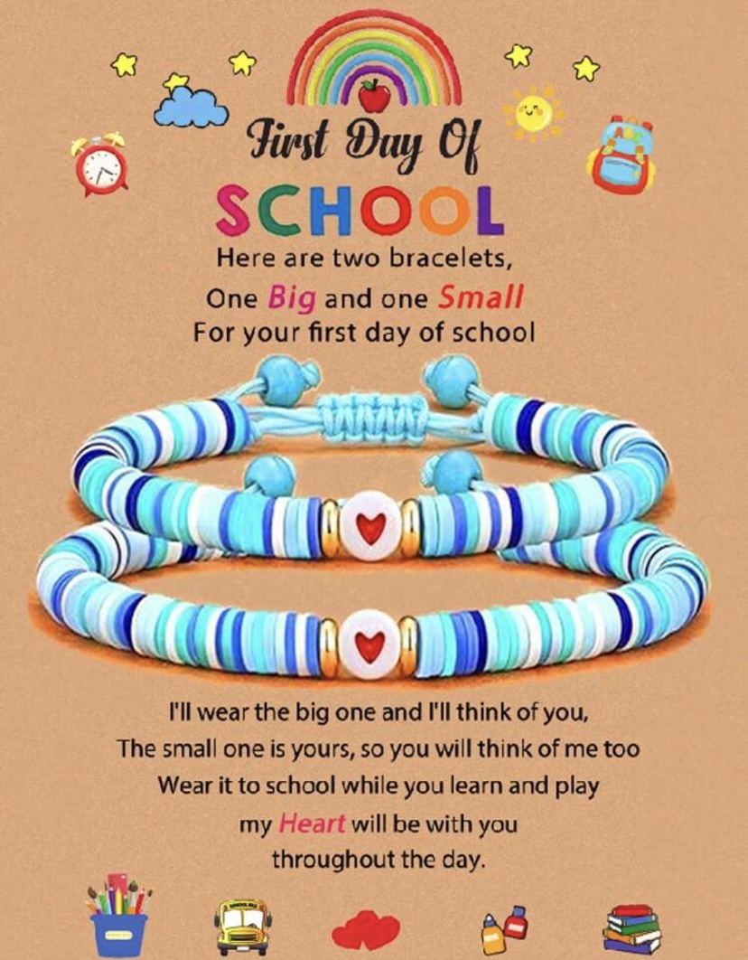 Goodwaro 2pcs/Set Fashion Matching Heart Wish Bracelet First Day Of Kindergarten/Pre K/School Mother Daughter/Daddy Son Beaded Bracelets Gift For School Day