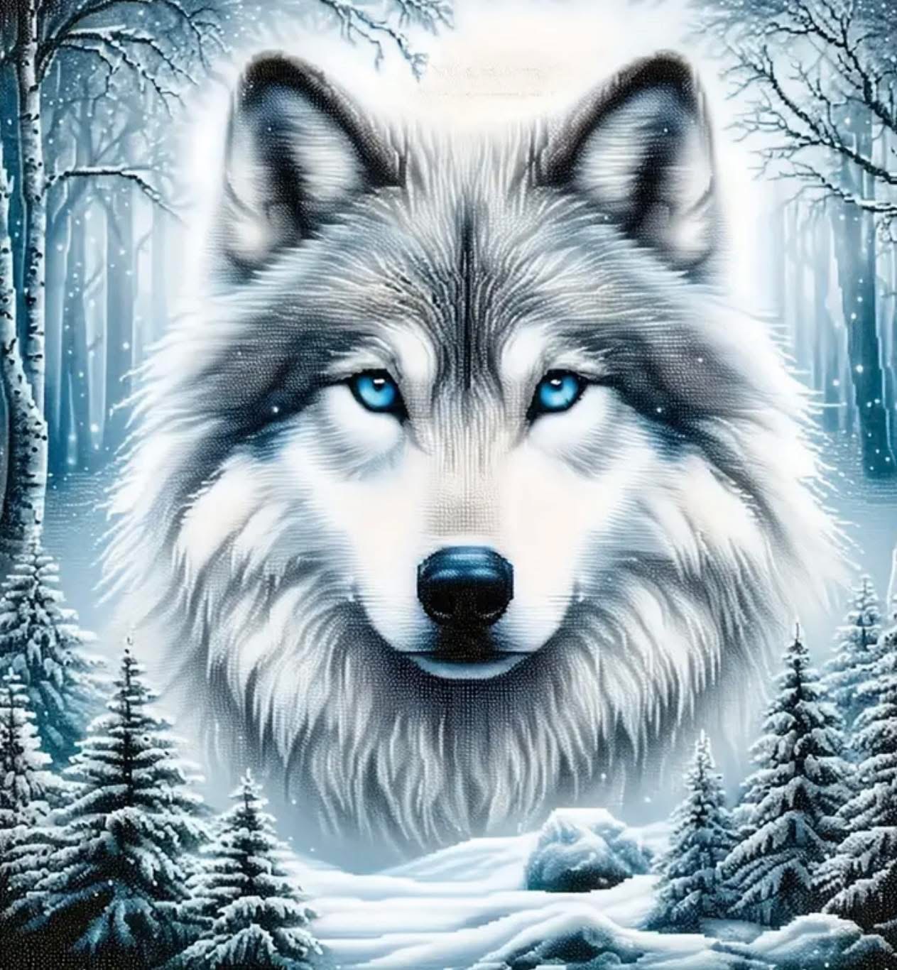 5D Diamond Painting Kit - Wolf Howl Forest Scene, 11.81” X 11.81” DIY Acrylic Mosaic Art with Blue Eyes & Snowy Landscape, Ideal for Home Wall Decor or Gift, Home Decoration|Winter Scene Art|Durable Acrylic Material, Winter Wonderland Decor