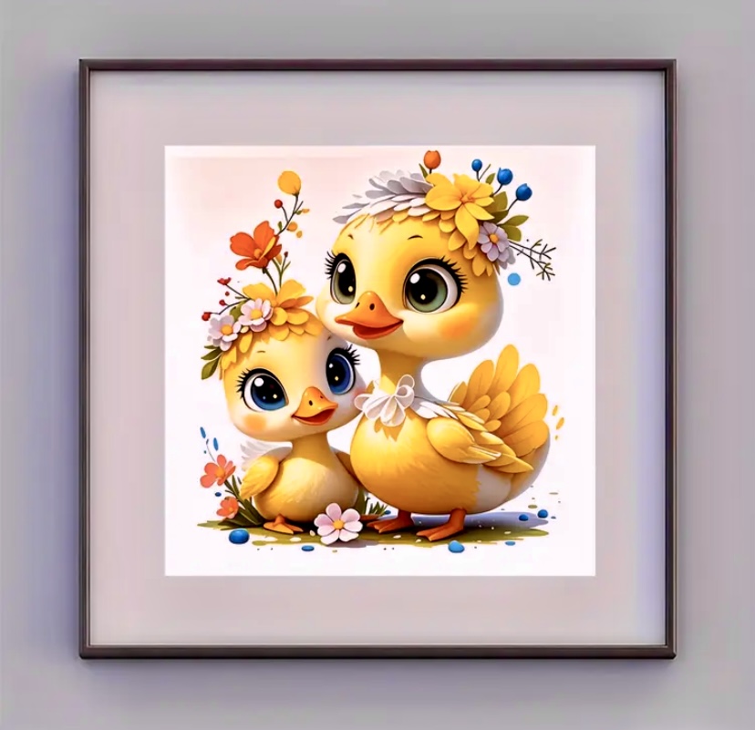 [Charming Diamond Painting Kit] Vibrant Floral Duck Family Diamond Painting Kit | Round Acrylic Gems, Animal-Themed Mosaic Craft, Ideal Gift & Party Decor, Perfect for Home and Friends, New Diamond Painting Kits 7.9” X 7.9”