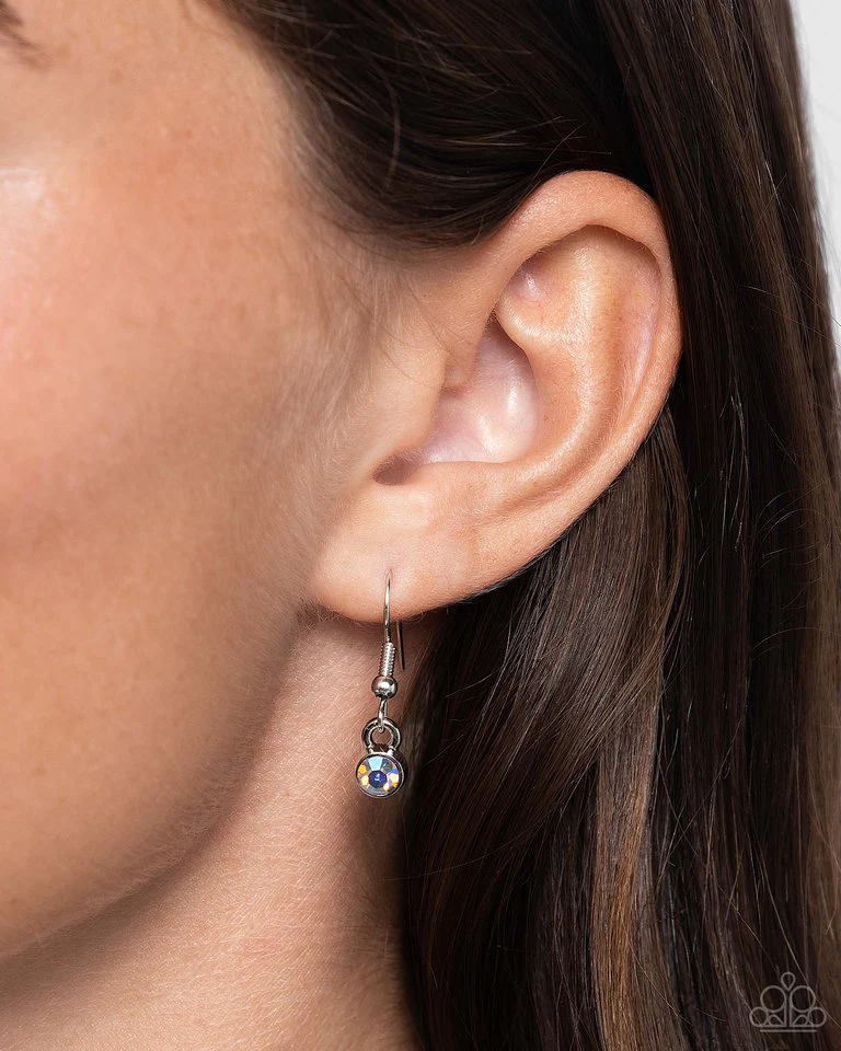 Adorned with radiant purple iridescent rhinestones and stunning emerald-cut gems, this celestial necklace showcases a shimmering silver moon charm delicately suspended from a gracefully extended silver chain. Two petite silver stars and elegant marquise-cut gems dangle alongside the moon, adding a touch of cosmic charm. Complete with an adjustable claspclosure, this piece features a dynamic color palette that enhances its unique allure.
