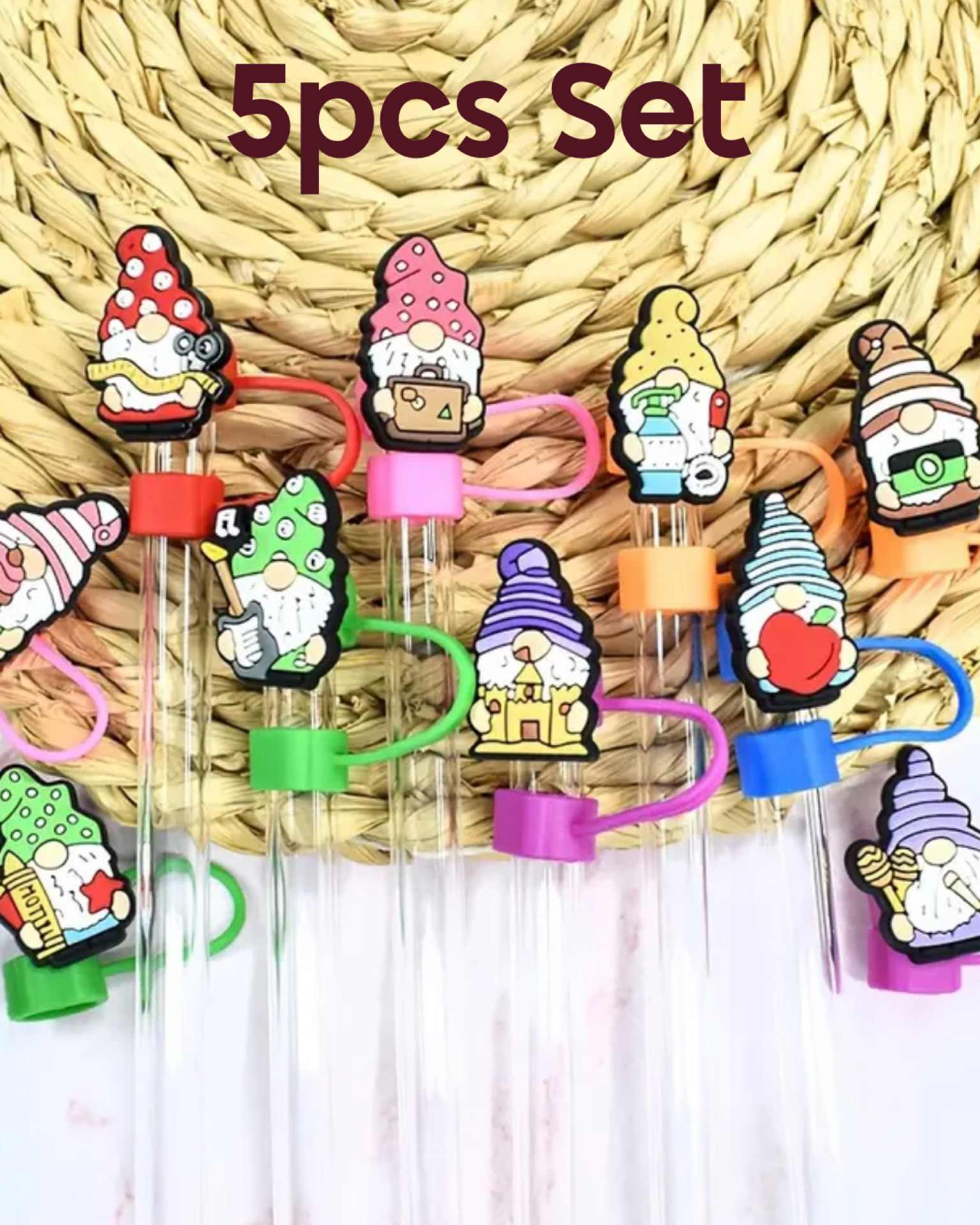 5pcs/Set, Soft Plastic, Goblin Gnome Straw Toppers, Cute Design Straw Cover, Colorful Shapes Straw Caps Tips Decoration Reusable Splashproof Straw Stopper Party Supplies Accessories, No Straw