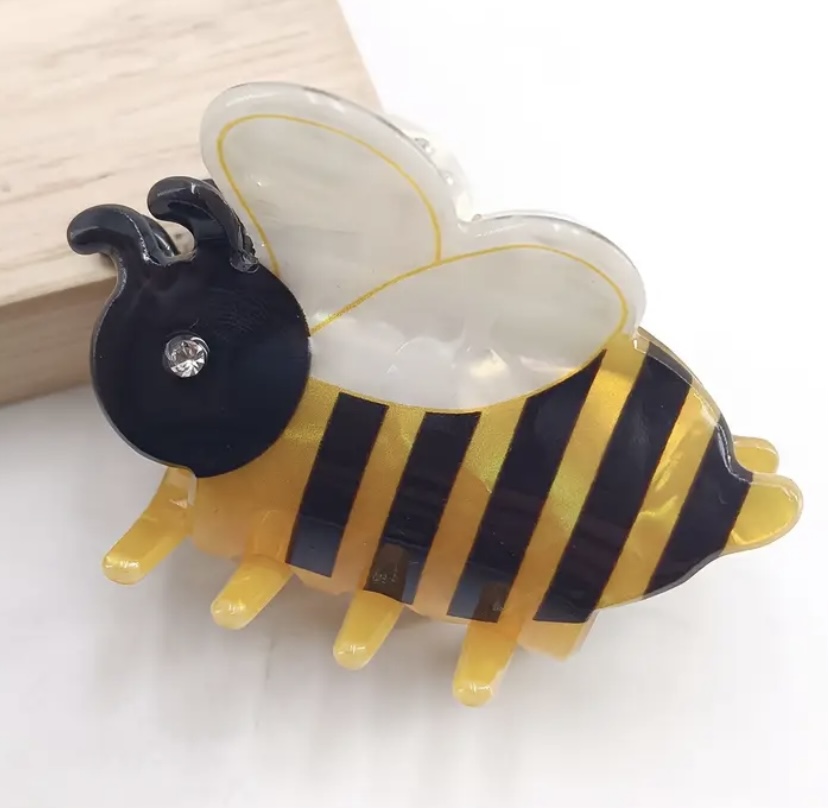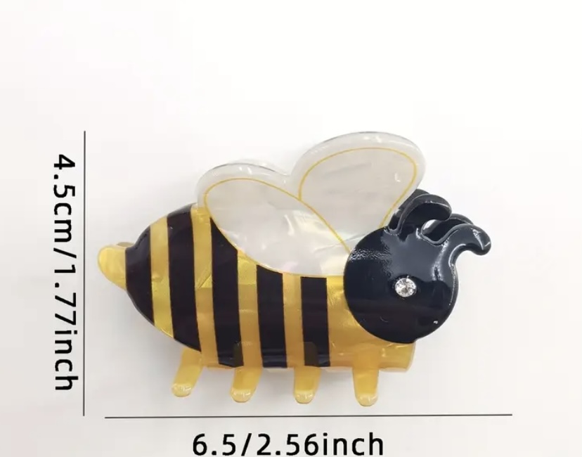 [Cute Bee Hair Claw Clip] 1pc Cute Bee PVC Hair Claw Clip - 6.5cm Soft Translucent Wings & Black/White/Golden Accents, Secure Hold for Wigs, Buns, Updos - Sweet & Playful Hair Accessories, Bee Decorations, Updo Hairpiece, Whimsical Design, Durable Hairpiece