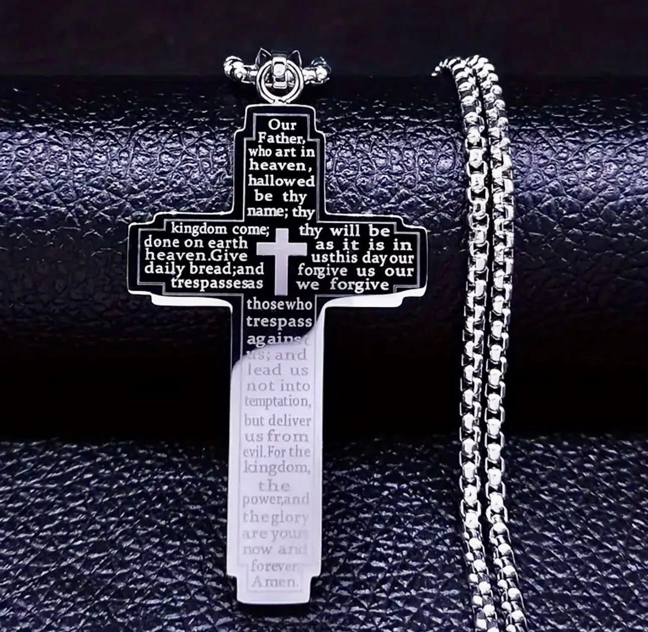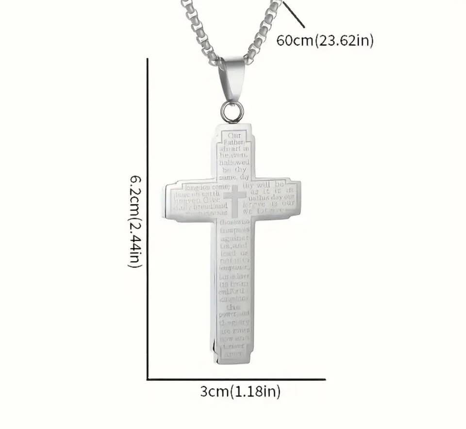 1pc Vintage Christian Scripture Cross Pendant Necklace - Stainless Steel Religious Jewelry with Inspirational Bible Verse, Unisex Daily & Party Wear Spiritual Gift for Men Women