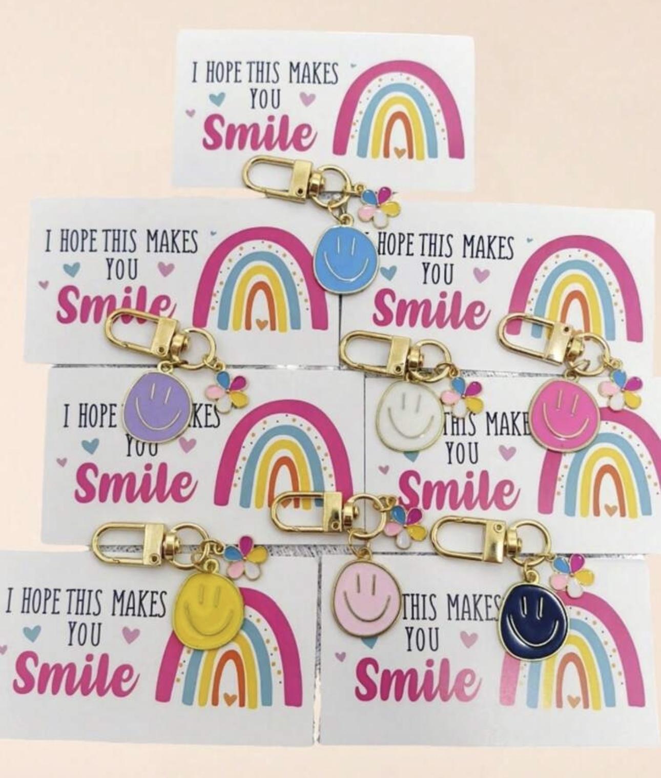1pc Happy Smiling Face Keychains - Colorful Cartoon Metal Keychain Pendants With Cards, Durable Metal Structure For Wallets And Handbags, Party Favors, Thanksgiving Back To School Gifts, Classroom Keychains, Multi-Color Set Car Accessories Cute Goth Y2k. Random color