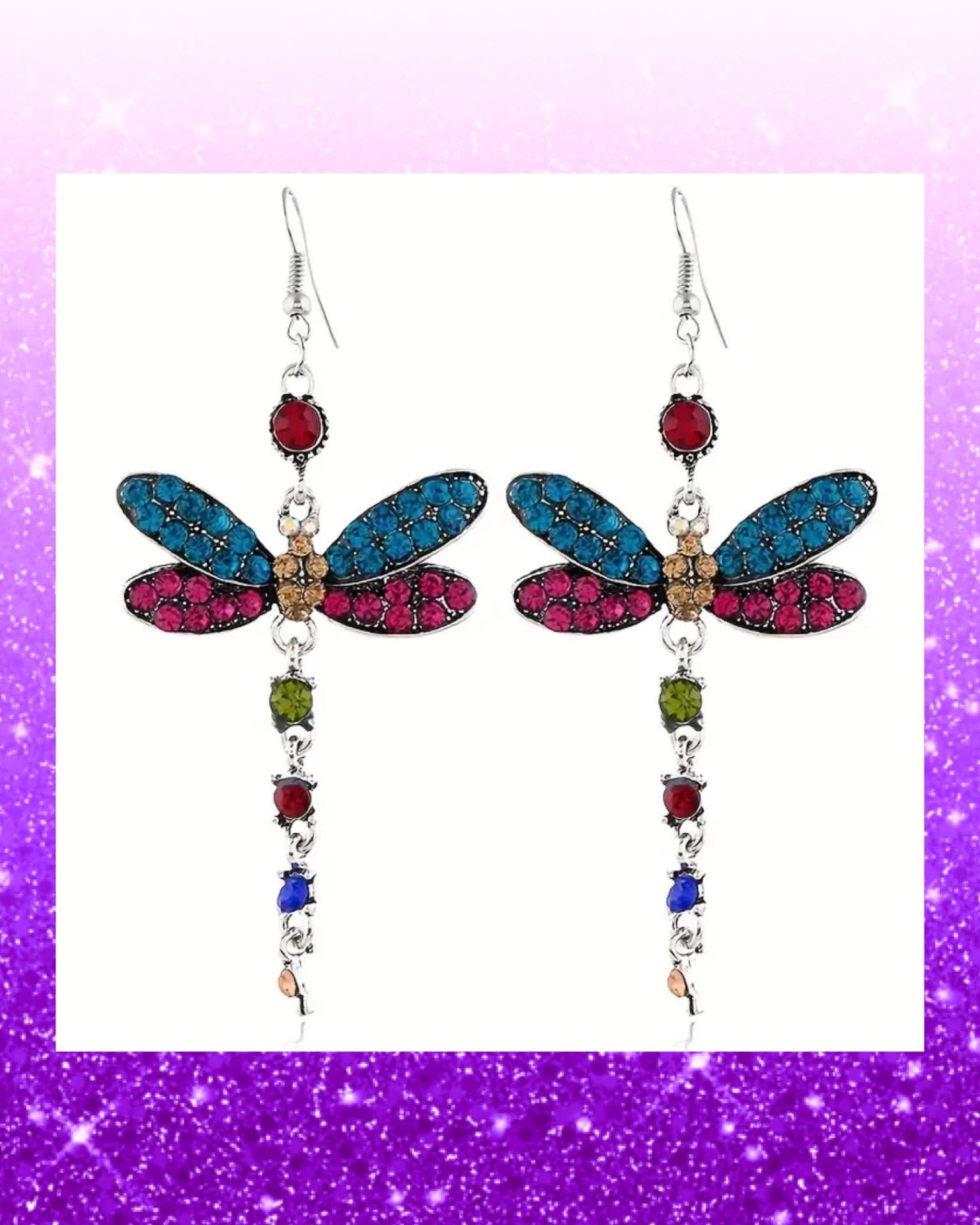 Vintage Tassel Animal Earrings Featuring Dragonfly-Shaped Pendants with Faux Diamonds in Multiple Colors, Perfect for Valentine'S Day Gifts.
