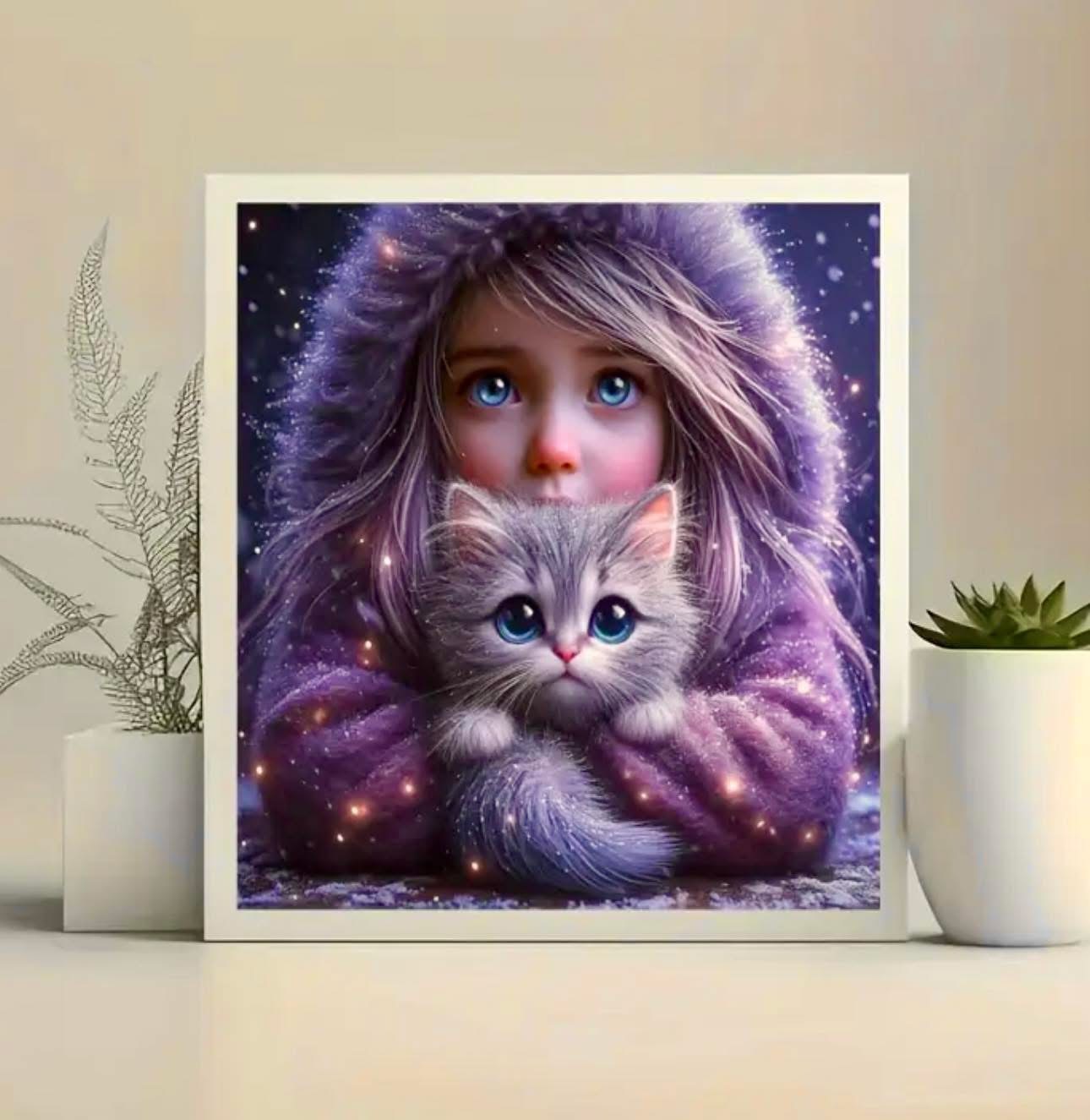 1pc 5D DIY Diamond Painting Kit, Full Round Diamonds, Animal Theme Canvas Art Craft Set with Tools, Mosaic Decorative Wall Art for Living Room Bedroom. 7.9” x 7.9”