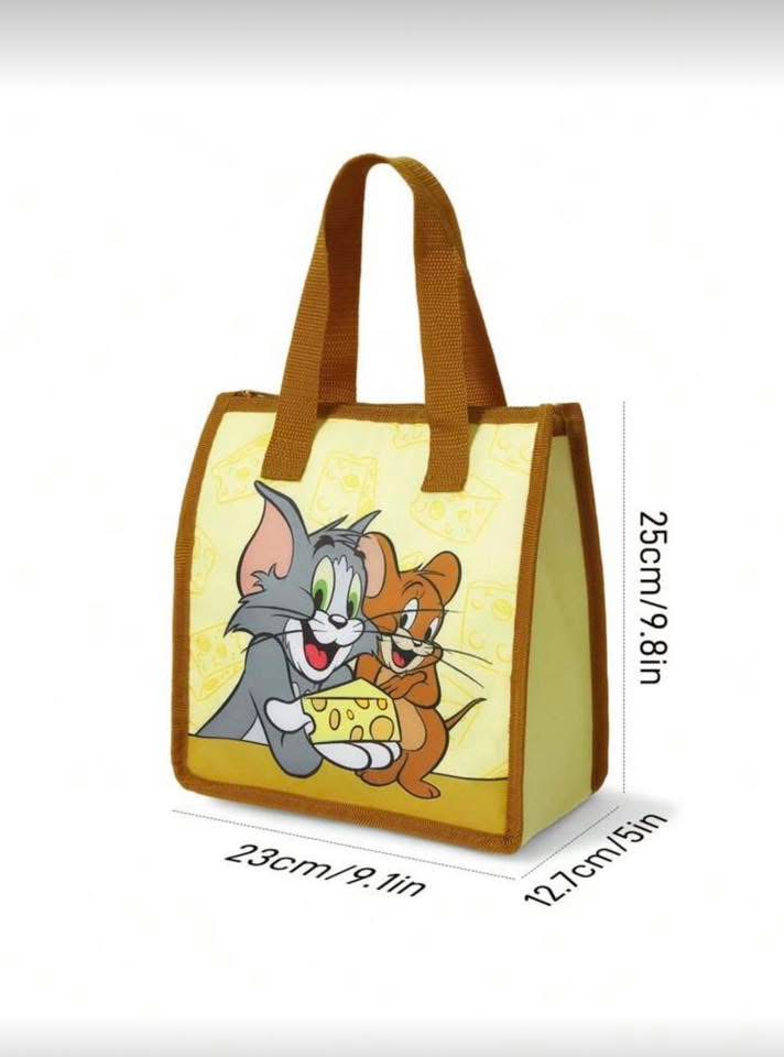 TOM & JERRY 1pc Cute Cartoon Cat And Mouse Pattern Printed Insulated Lunch Bag, Keeps Food Warm Or Cold, Picnic Bag, Large Capacity, Can Hold Lunch Boxes And Drinks, Suitable For Picnics, Camping, Travel, Home Use, Suitable For Families, And Students