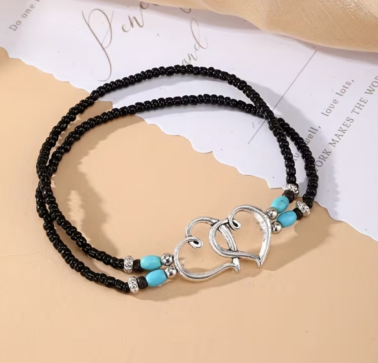 Ladies' Bohemian Elegant Designer Double Heart Beaded 2-Layer Anklet, Perfect for Daily Dining Accessories and Gifts, Gift for Friends, Festival Jewelry, Stylish Accessory, Bohemian Jewelry, Delicate Beads, Handcrafted Anklet, Fashion Anklet, Trendy Jewelry, Gift Shoppers, Accessory Collect