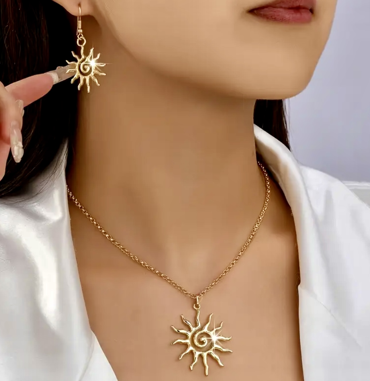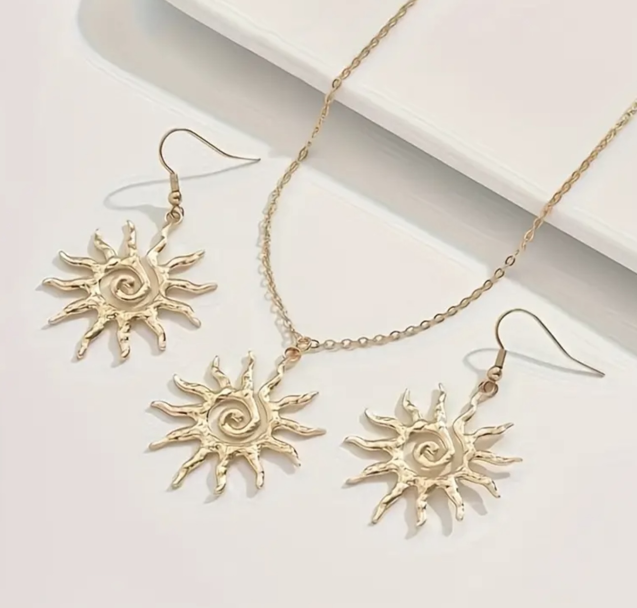 Bohemian Style Sunflower Pendant Necklace and Earrings Set - Fashionable, Unique, Versatile, and Luxe.