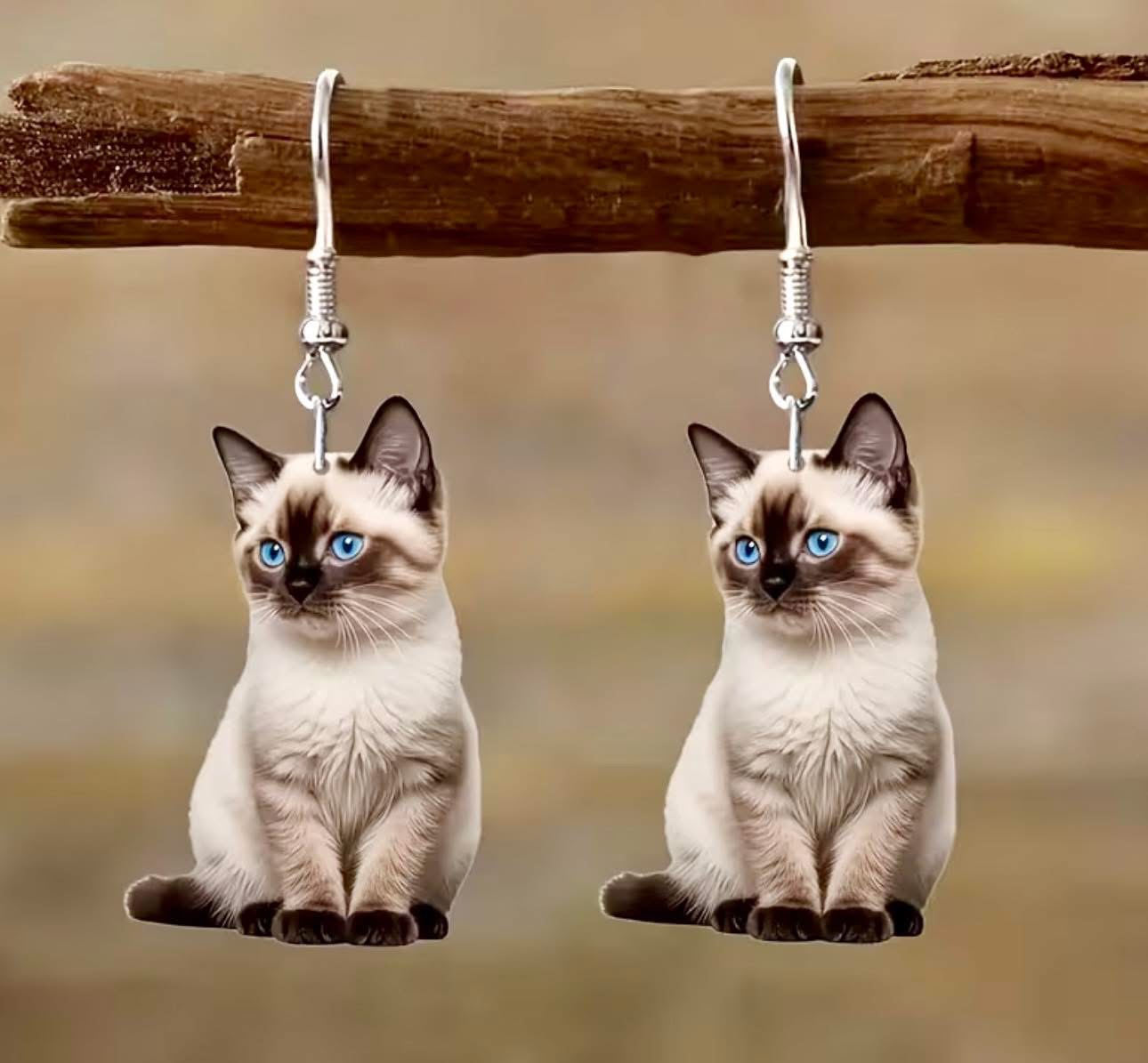 2D Flat, 1 Pair of Cat Earrings, 2D Flat Design, Vintage, Sporty, Retro, Lively, Chic, Cute, Elegant, Sweet Style, Geometric Shape, for Daily Commute, Dates, Parties, Festivals, Travel, Vacation, 2D Flat