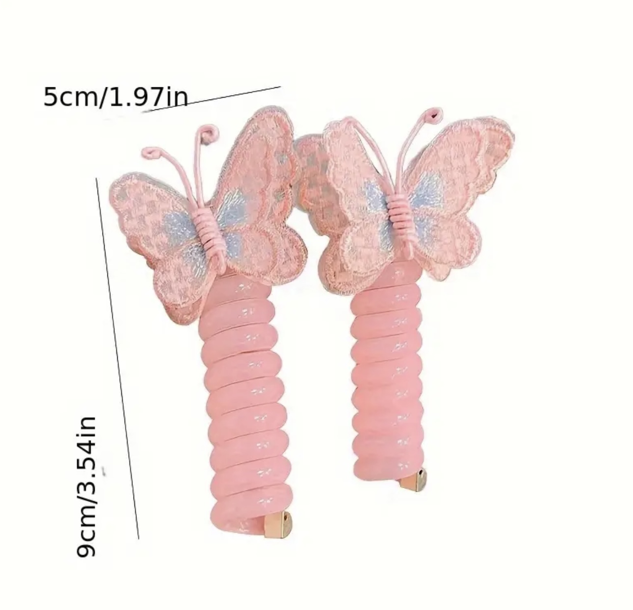 2pcs Butterfly Spiral Hair Ties ~ Pink