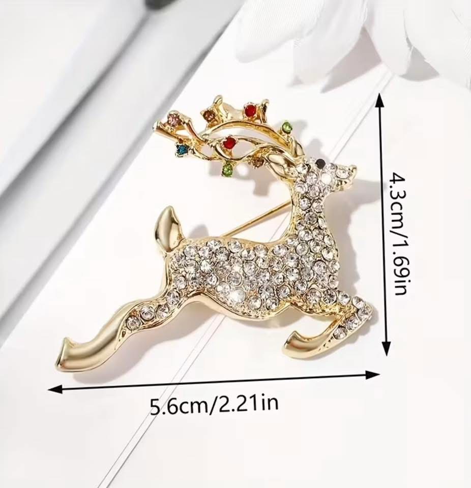 A Fashionable European and American Cute Reindeer-shaped Full-Rhinestone Luxurious Brooch, a Gorgeous and Adorable Women's Clothing Accessory Pin Corsage