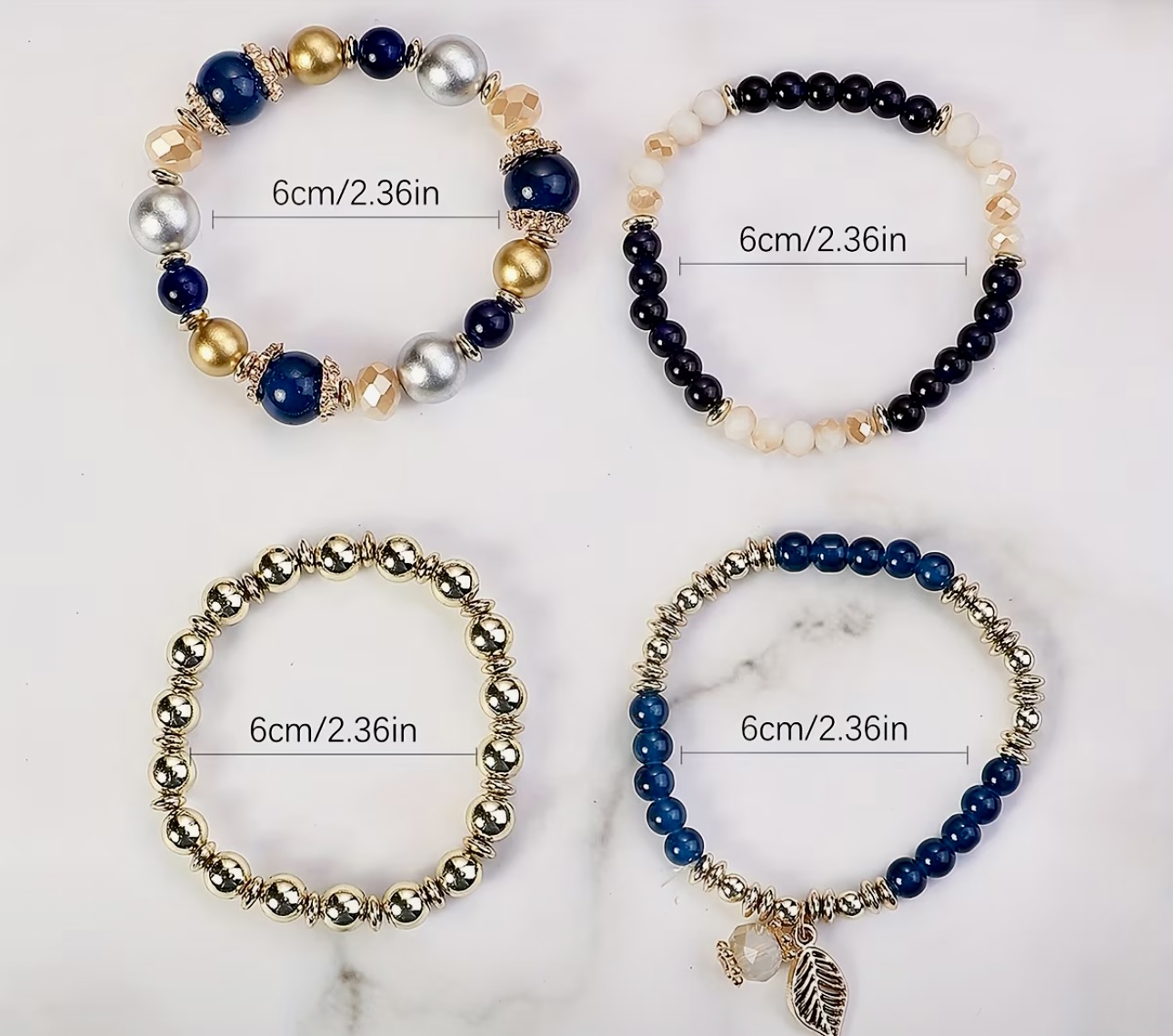 4pcs/set Bohemian Style Beaded Leaf Pendant Multi-Layer Elastic Cord Bracelet Set.
