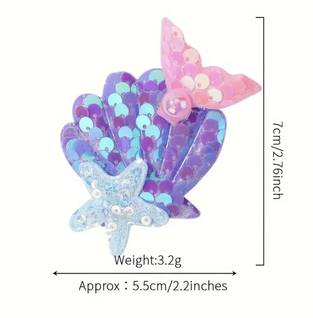 2pcs Glittering Mermaid Tail and Shell Hair Clips - Colorful Sequins, Handmade with Pearls, Perfect for Party Attire, Cute Hair Accessories