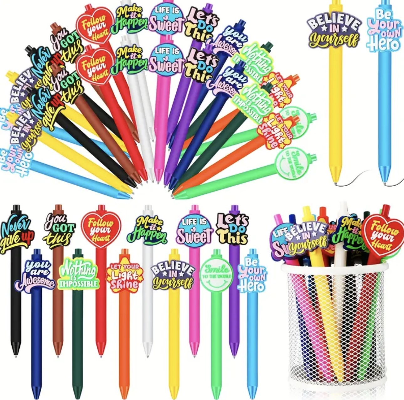 1pc Inspirational Quote Pens Motivational Ballpoint Pens Colorful Pens Novelty Positive Retractable Pens Christmas Bulk Gifts For Women Adult Coworker Student Office