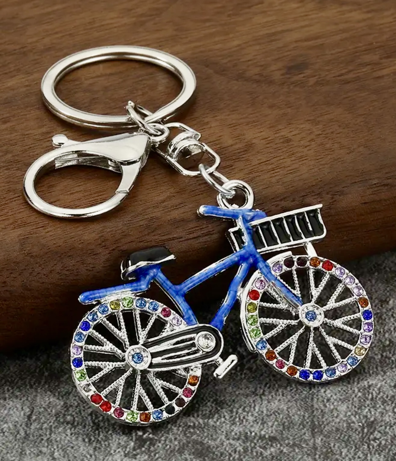 1pc Elegant Rhinestone Bicycle Keychain ~ Blue