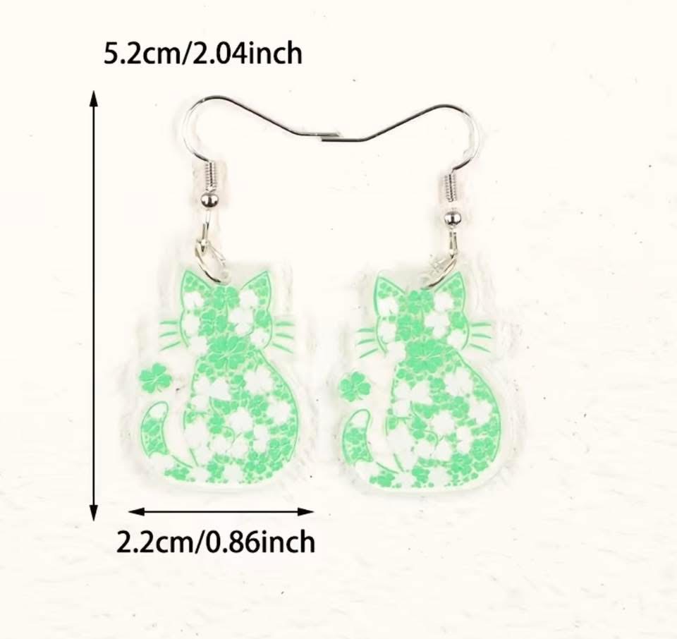St. Patrick's Day Cute Four-Leaf Clover Cat Acrylic Earrings for Women, Perfect for Vacation and Gift-Giving, Unique Creative Personality Earrings, Meaningful Women's Accessory Jewelry