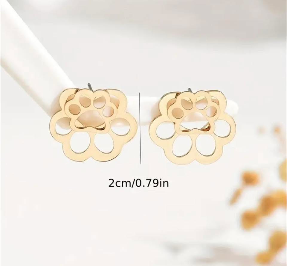 1 Pair Autumn-Winter Creative Women'S Earrings | Fashion Hollow Cat Paw Design, Iron Material, Versatile for Daily and Party Occasions, 316L Stainless Steel Post | Brand: LXALRY