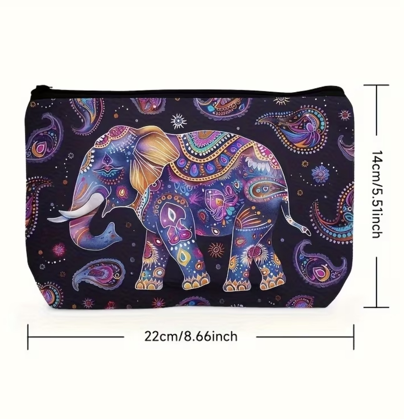 Boho Elephant Travel Makeup Bag- Lightweight Zipper Cosmetic Pouch, Easy Care Fabric, Perfect Gift for Teachers and Friends
